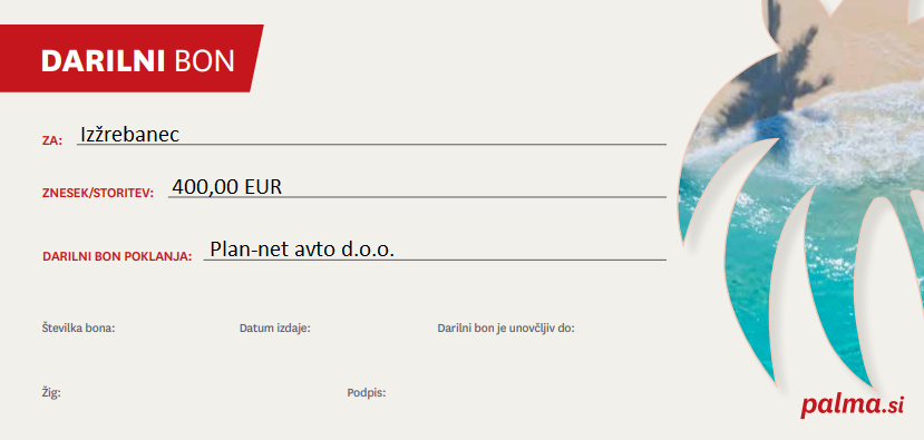 1x Darilni bon za izlet po izbiri v organizaciji agencije Palma